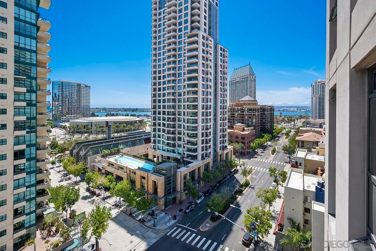 Rare 3-bedroom floorplan! This bright and truly spacious south-facing Renaissance residence redefines city living with two separate bedroom suites and a third room perfect for a guest bedroom or even office. You will love the beautiful views of the San Diego Bay, Coronado Bridge, and surrounding cityscape from both its bedrooms and a generous L-shaped balcony. The kitchen is complete with granite surfaces, stainless appliances, Viking cooking range, recessed and under-cabinet lighting, and plenty of cabinetry. The primary bedroom serves as the ultimate urban refuge with blue water views, dual closets, and a spa-inspired bathroom with soaking tub, shower, and dual vanity. PLUS a host of built-ins, hardwood floors, elegant baseboards, storage cage, and TWO secured parking spaces round out this turnkey condo!